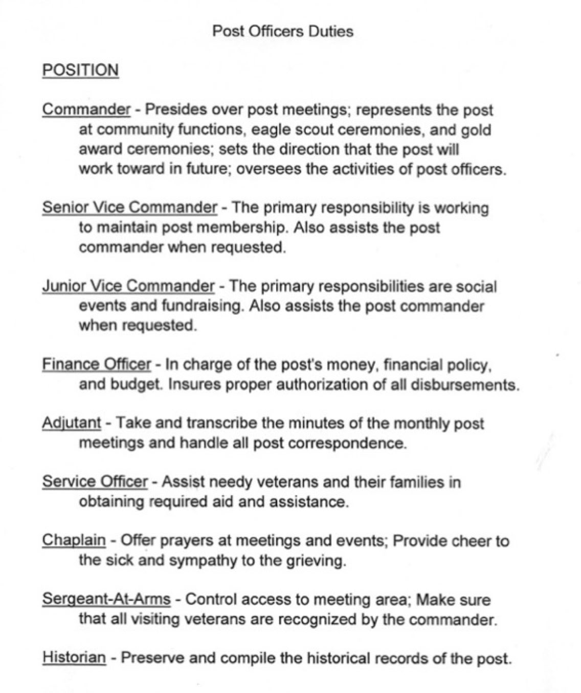 Our post received its temporary Charter on September 27, 1933, and the permanent Charter on October 3, 1934.