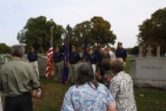 Lewis contacted the Veterans Administration. The family’s story was a compelling one, and the stone was procured in just two weeks instead of the usual six weeks. A military ceremony was arranged at Regina’s burial place, St. James Cemetery in Manchester.