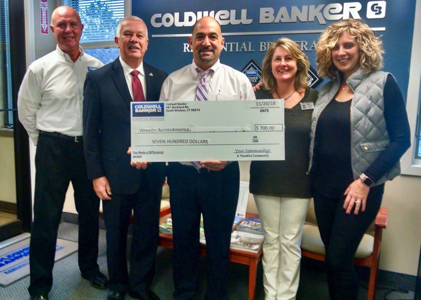Receiving donation check from Coldwell Banker Realtors for Wreaths Across America.