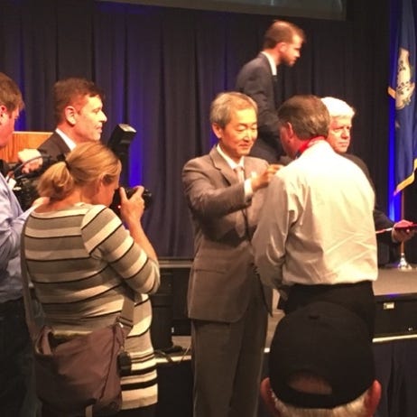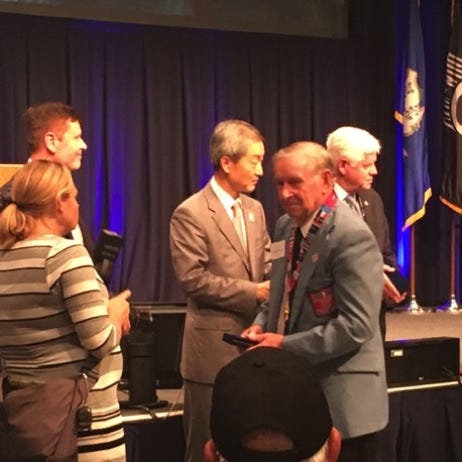 The Ambassador of the Republic of Korea, Ahu Ho-Young came to East Hartford to present the Korean Medal of Gratitude to 100 Connecticut Korean War Veterans in our state who served in what has been called the ‘Forgotten War.’
