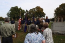 Lewis contacted the Veterans Administration. The family’s story was a compelling one, and the stone was procured in just two weeks instead of the usual six weeks. A military ceremony was arranged at Regina’s burial place, St. James Cemetery in Manchester.