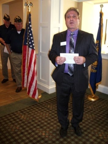 Certificates and Flag pins were handed out by Ron Fournier and Skip Hammond of Post 133. For the newly built Veterans Wall the Post membership presented an American Flag that had been flown over our Nations Capital Building. The flag was folded during the ceremony by Ken Lewis and Roger Anderson and was presented to Heather Wood, Engagement Director, at The Residence at South Windsor Farms by Leigh Lovering of Post 133.The Color Guard for the American Flag and American Legion Flag was handled by Joe Peppin and Roger Anderson of Post 133. Sid Rabin of Post 133 took many pictures during the ceremony and they can be viewed on the Post 133 web site. Bill Dopirak provided all of the Patriotic and Military music for the ceremony. The non veteran residents of The Residence at South Windsor Farms along with some staff members also attended the ceremony and together numbered about 20. A very nice wall dedication speech aimed at the veterans was given by Joseph Della Puca, Executive Director, of The Residence at South Windsor Farms. Also Thomas Delnicki, Mayor of South Windsor, gave a short speech and presented the veterans with a Proclamation from the Town of South Windsor for the Veterans Wall. Leigh Lovering, Post 133 gave a thank you talk to the veterans for their service from Post 133 membership and promised that we would be back to visit