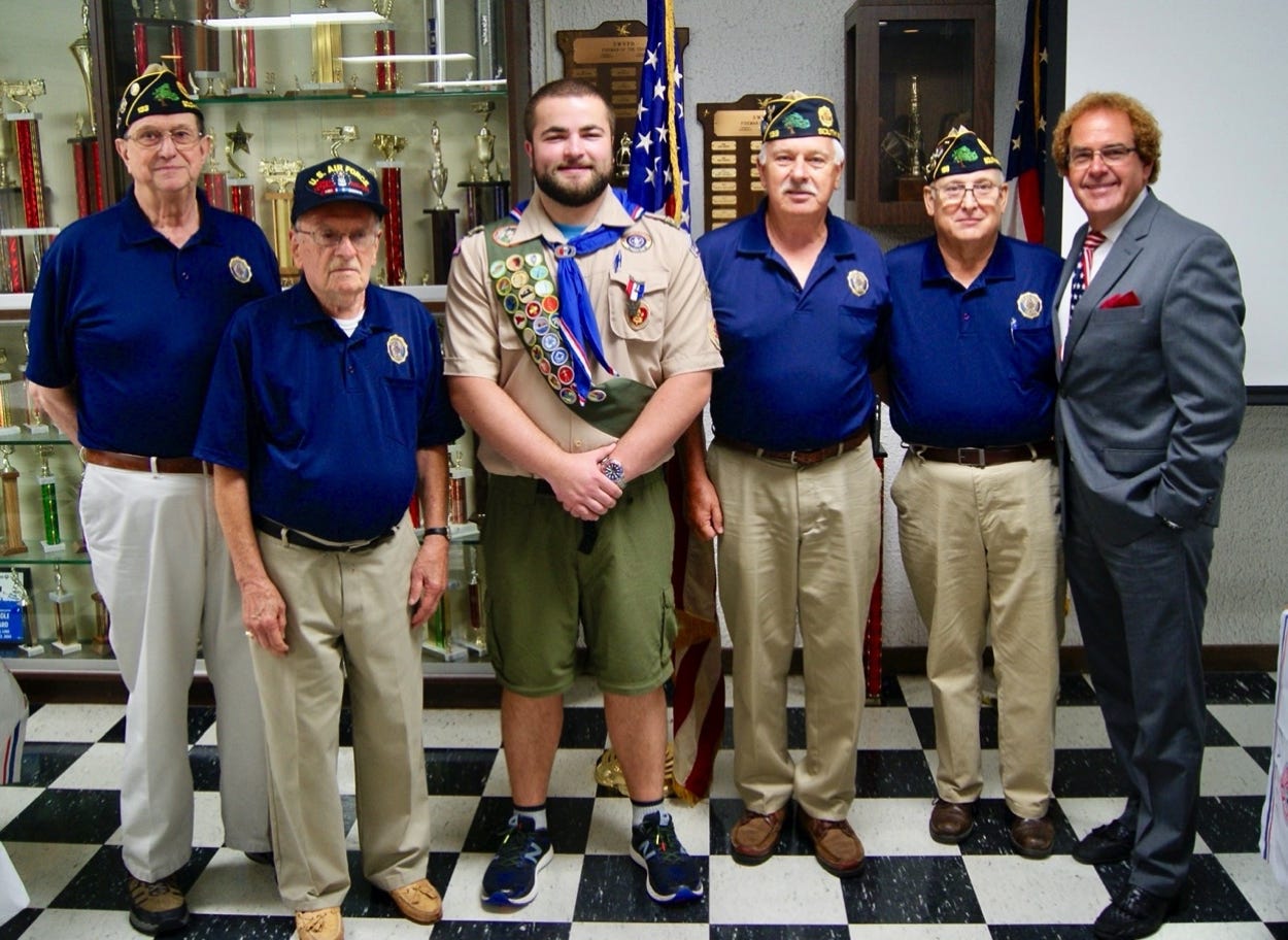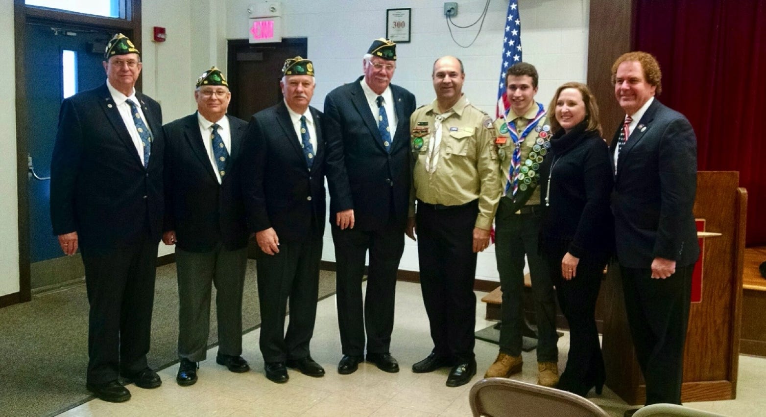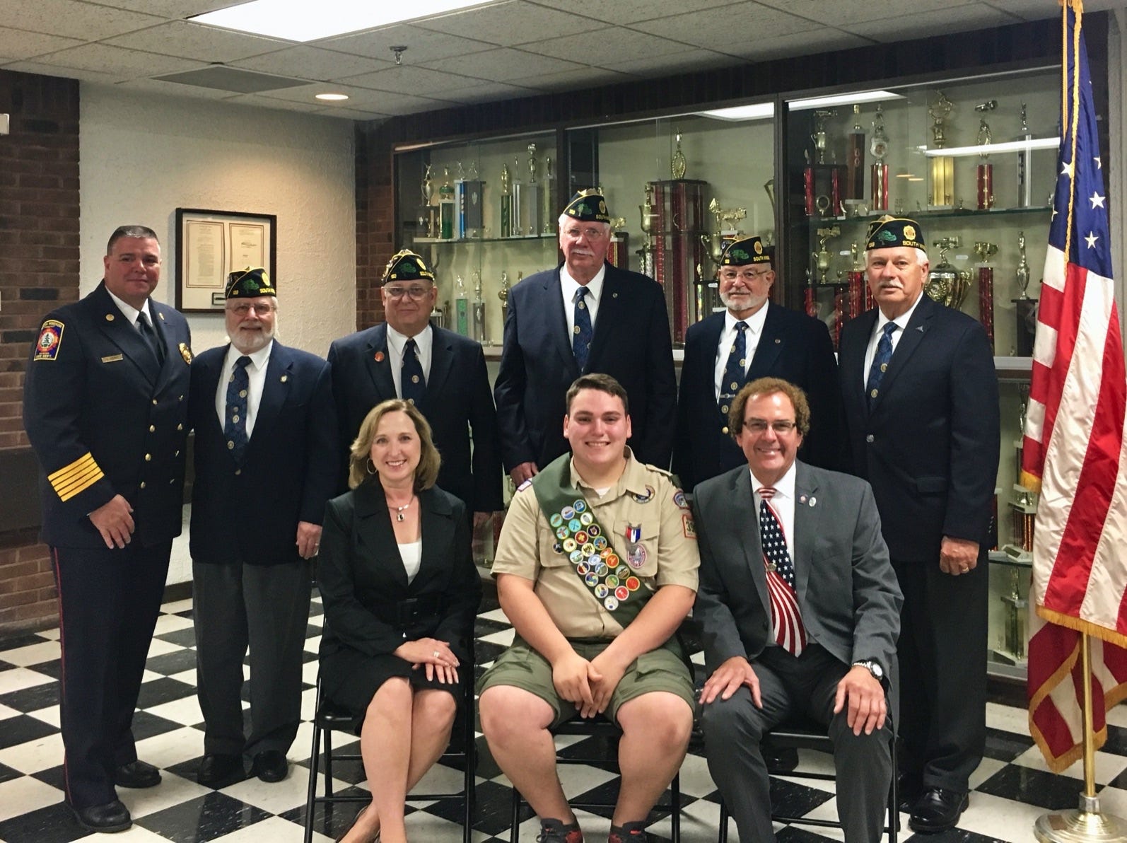 L-R Deputy Mayor Carolyn Mirek, Roger, Ron, Ken, Leigh, Eagle Scout Michael Fialkoff,