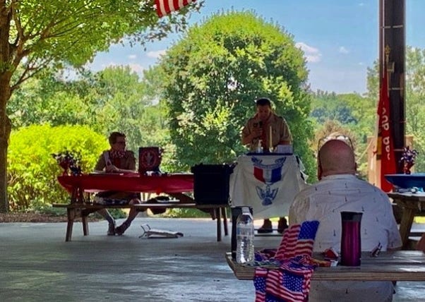 socially distanced, outside at the Rotary Pavilion in Nevers Park.